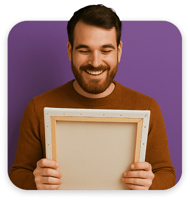 Tu obra se imprime profesionalmente en lienzo premium y se entrega en tu domicilio en solo 3 días.